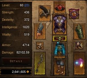 Jaké jsou výsledky? 18k Life, 82k dmg, 3600 armor, 25% crit, 150% crit dmg, okolo 200 all res, 130% exp bonus, 130 MF a GF (bez NV).